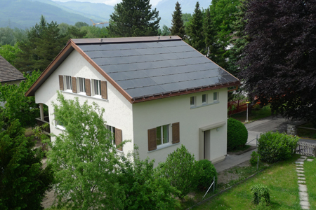 kleinen Luft-Wasser-Wärmepumpe. Die gesamte Dachfläche wurde mit einer ästhetisch