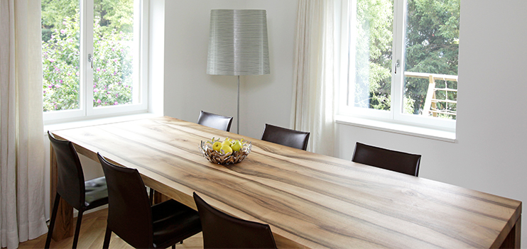 - Weitgehende Verwendung wasserbasierter VOC freier Anstriche auf Holz innen und aussen